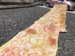 オーガニックコットン20mを参加者のみなさんと自然染料で刷毛染めしました。